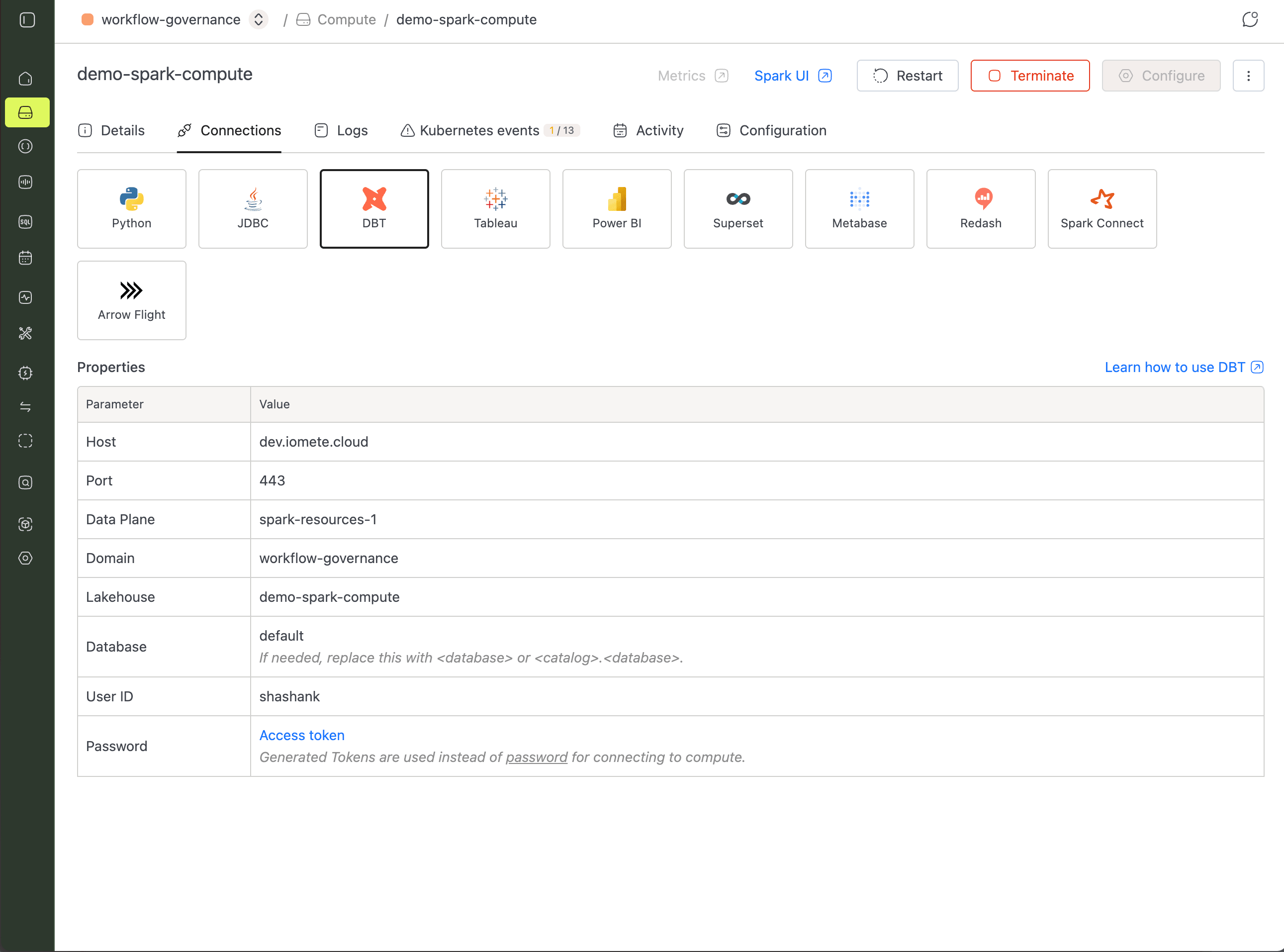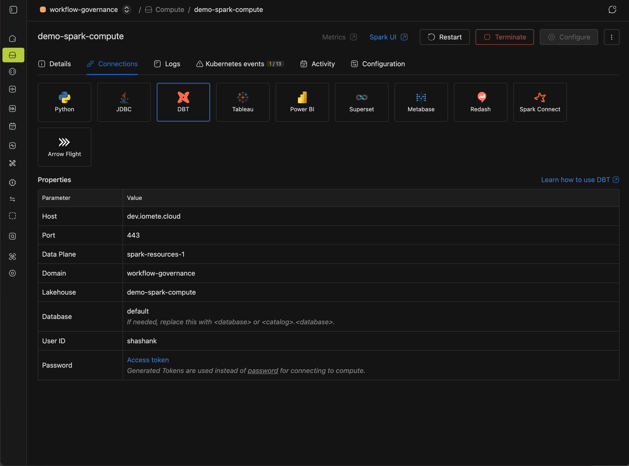 dataplane (dataplane name that dbt will connect): spark-resources-1