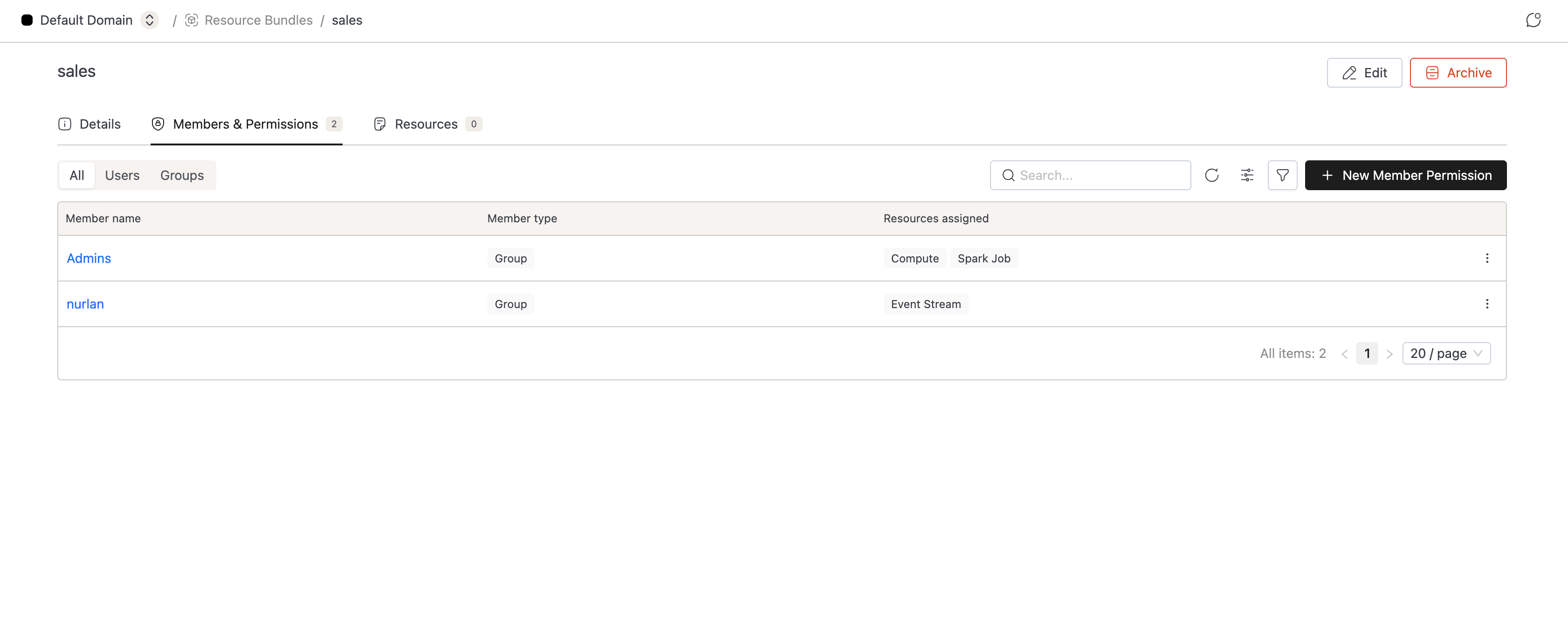 - Groups: Any member of the group (including nested group members) can manage the resource bundle