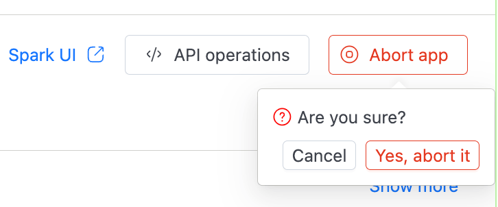 - Click the three-dot menu on the row and select Abort app. You can also open the application's detail view and click Abort app in the header.