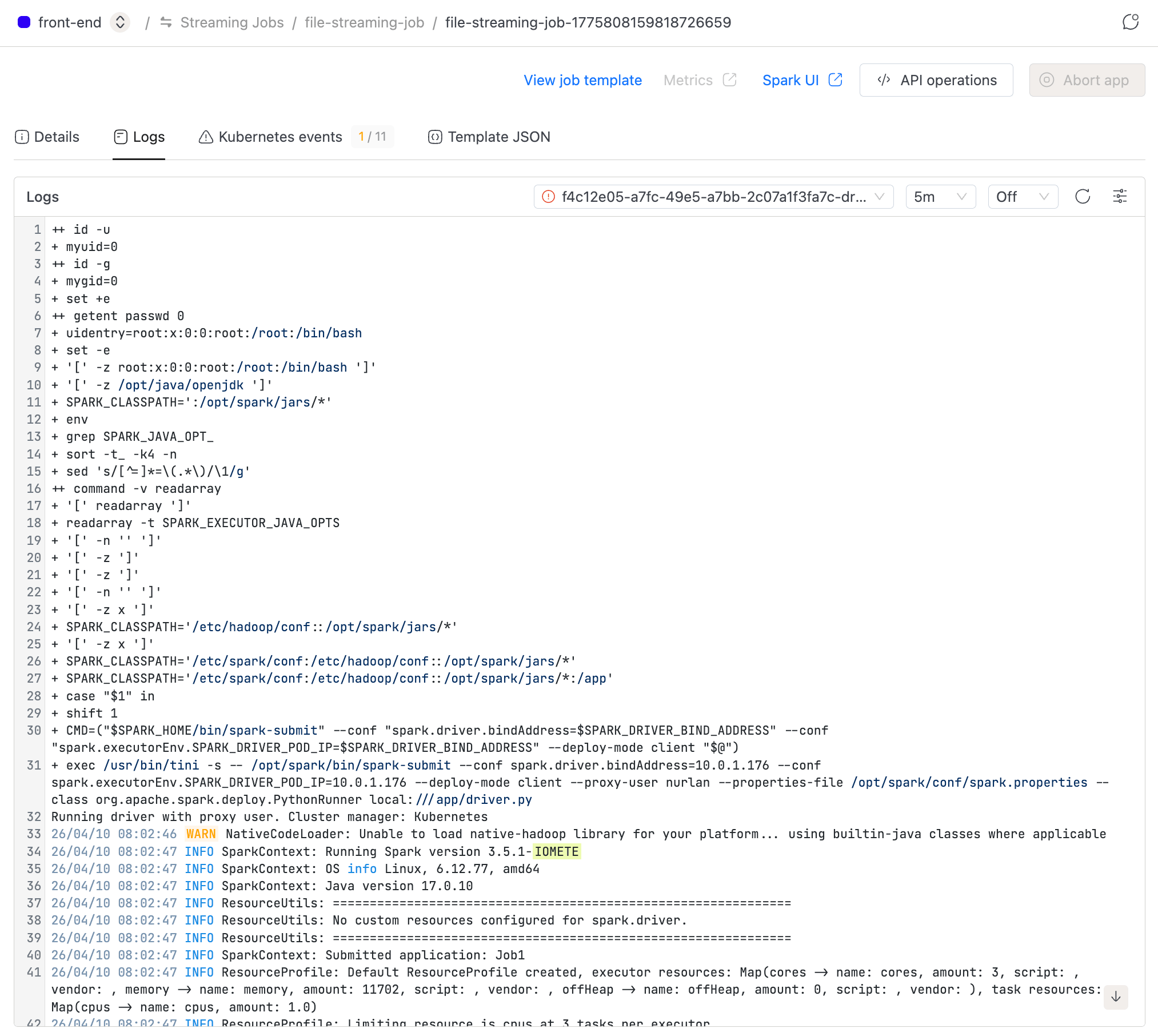 local:///app/job.py. For JVM, usespark-internalif the class is already on the classpath.