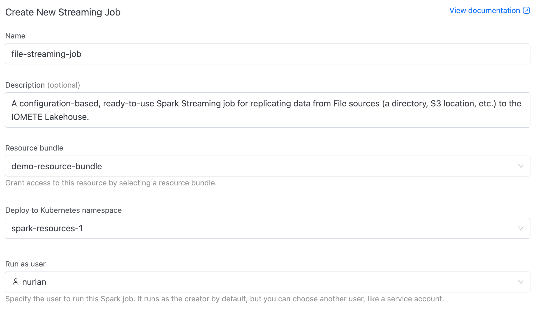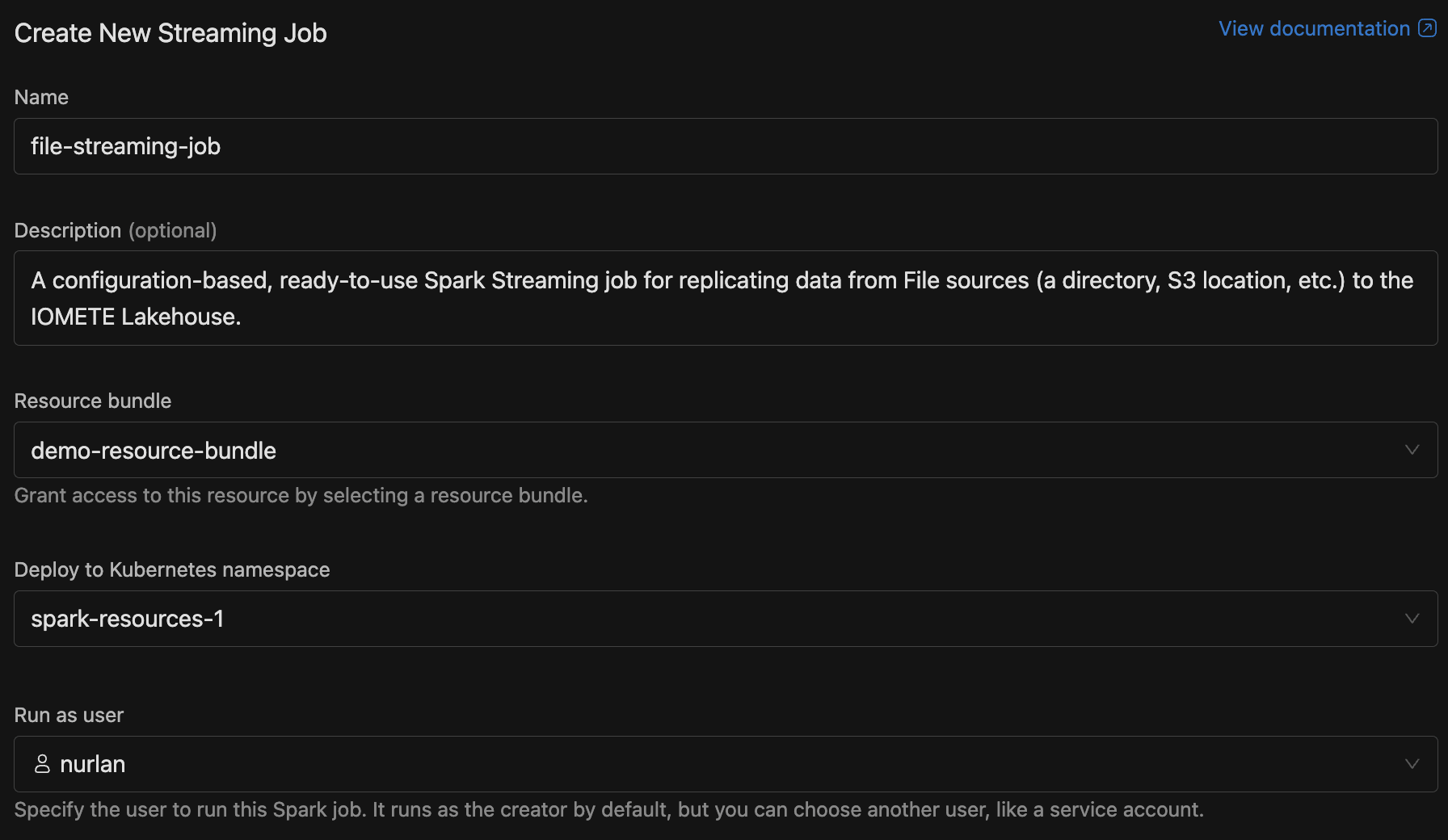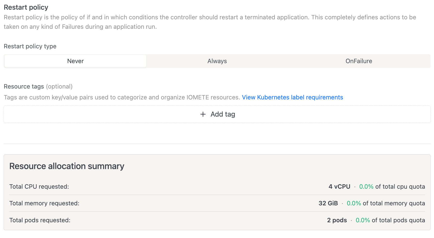 - Resource bundle: Pick a resource bundle that defines the resource quotas for this job.