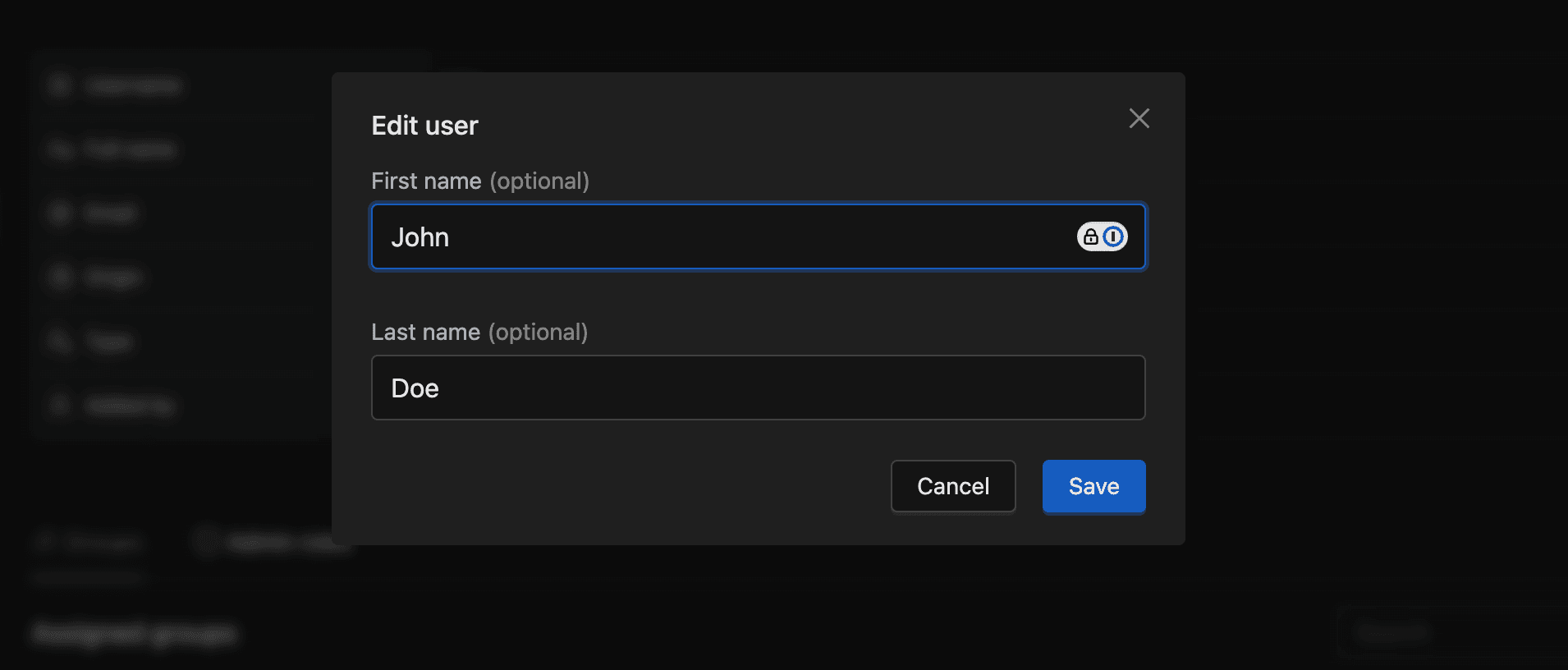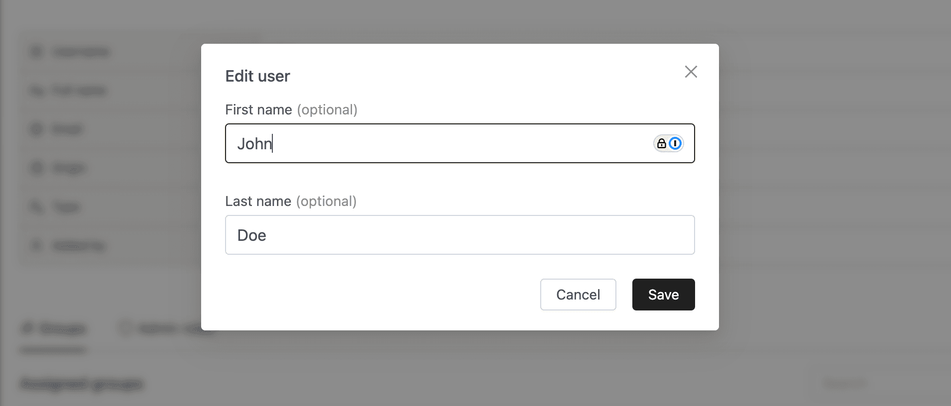 - Update the First name and Last name fields. (Username and Email are read-only.)
