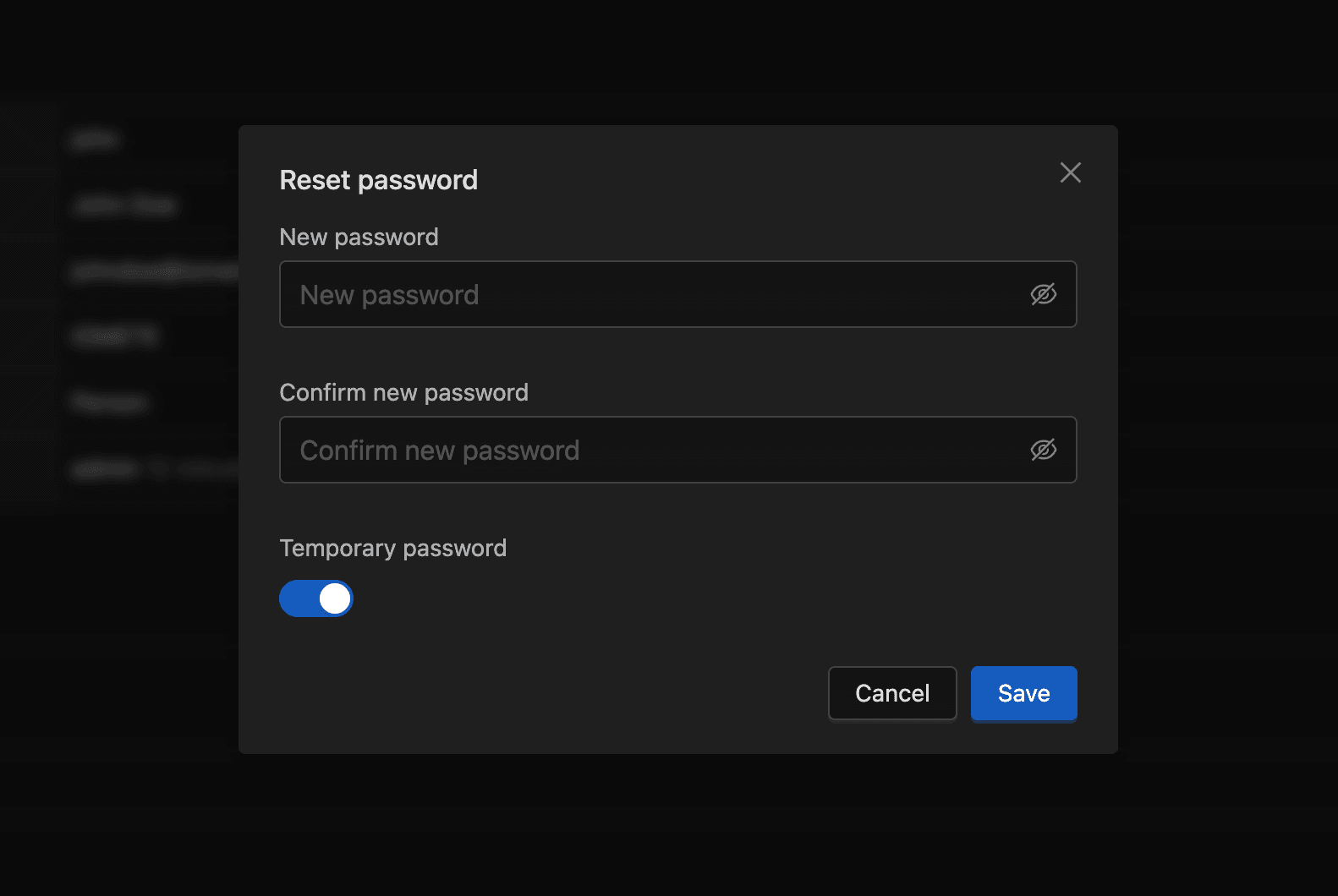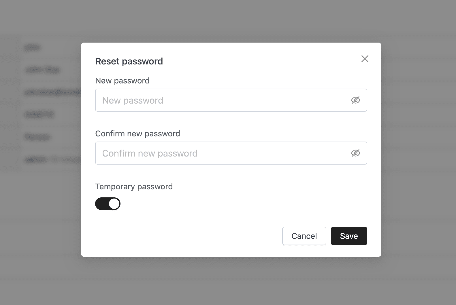 - The Temporary password toggle is on by default, forcing the user to pick a new password at next login. Turn it off if the password should persist.